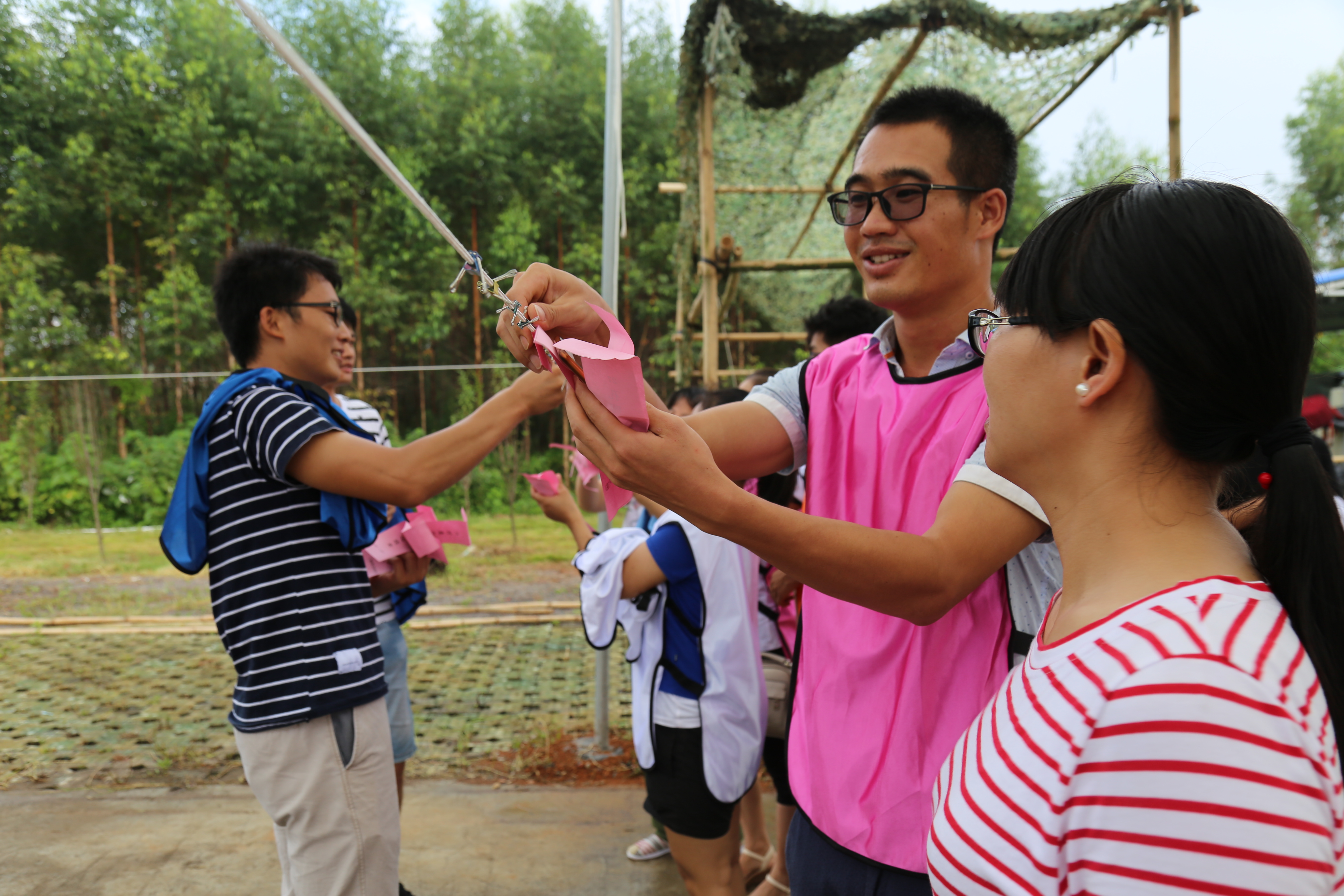 此次趣味游园活动分有集体项目和自由项目,设有拔河、袋鼠蹦跳、猜灯谜、空中套物等活动。游园活动还没开始,大家已经热情高涨、跃跃欲试了。“猜灯谜”紧张趣味,最激烈的当属拔河比赛,天蓝队与浅蓝队旗鼓相当,啦啦队热情助威……活动开始后现场气氛活跃,欢呼声笑声不断,场面异常热闹,通过团队活动,充分的展现了员工之间的凝聚力和团队合作能力。之后,大家进行美味的烧烤活动。