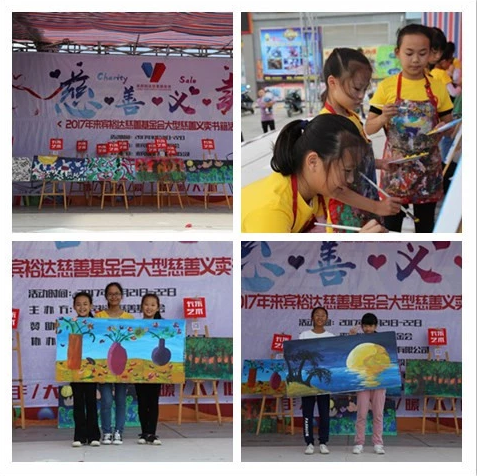 值得一提的是,今年的书籍义卖活动还邀请了来宾市新华书店、宾市中汇大洋投资有限公司、广西鑫东成商贸有限公司、卡乐美术中心、星空动漫网咖一同参与协办。在10月21日的开幕仪式结束后,来自卡乐美术中心的小艺术家们以“爱暖人间”为主题,通过比赛作画的方式来支持慈善义卖活动。通过微信投票环节评选,最终选的一二三等奖可以获得由来宾裕达慈善基金会提供的价值500元-100元不等的精美书籍。