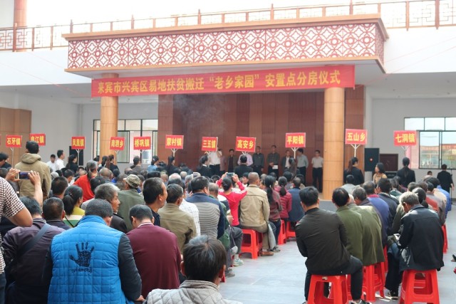 此次分房仪式标志着兴宾区将有一批群众将搬迁农村生活地,融入城市,实现脱贫致富。选定在城南区“老乡家园”安置点进行扶贫搬迁安置,主要是依托市区的就业优势,周边完善的就学、医疗、文化等基础设施,为搬迁群众创造一个良好的就业环境和生活环境。据悉,“老乡家园”安置房将于2018年初全部完成交付。