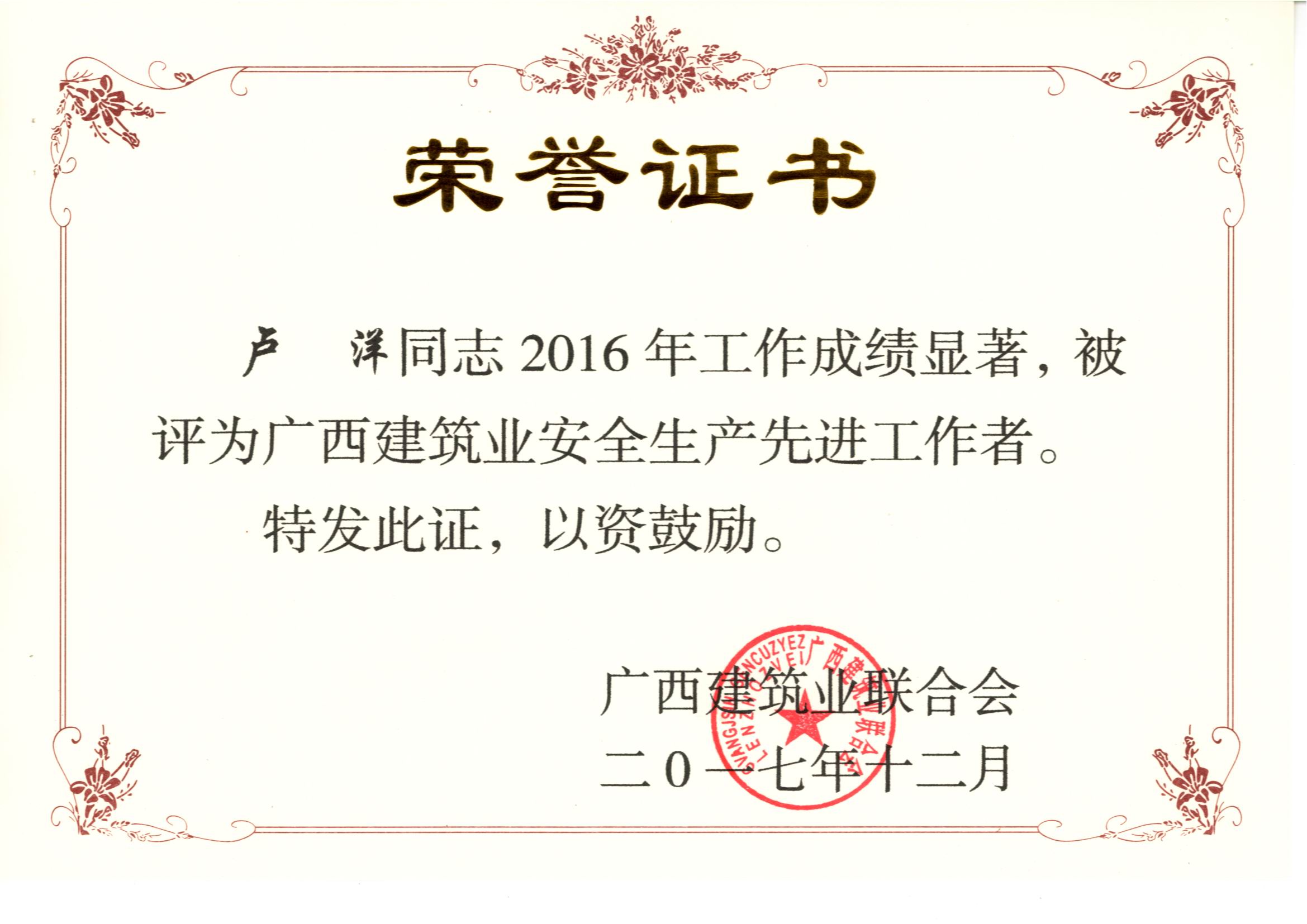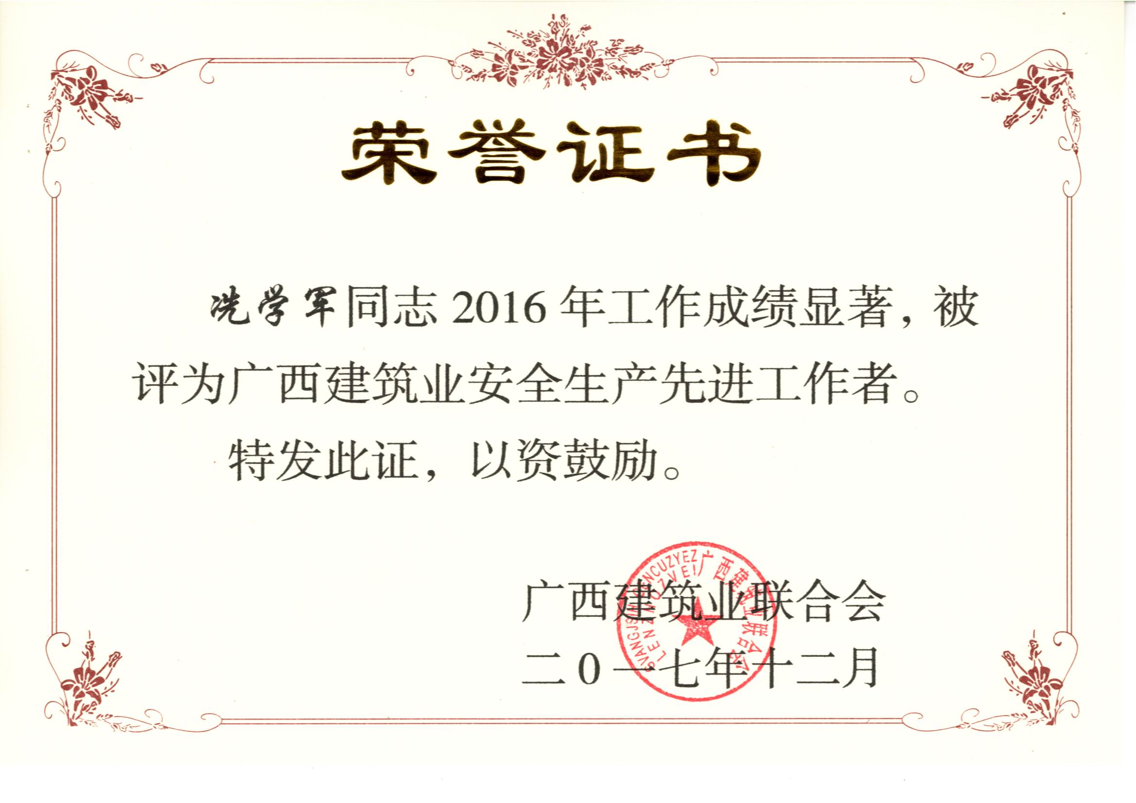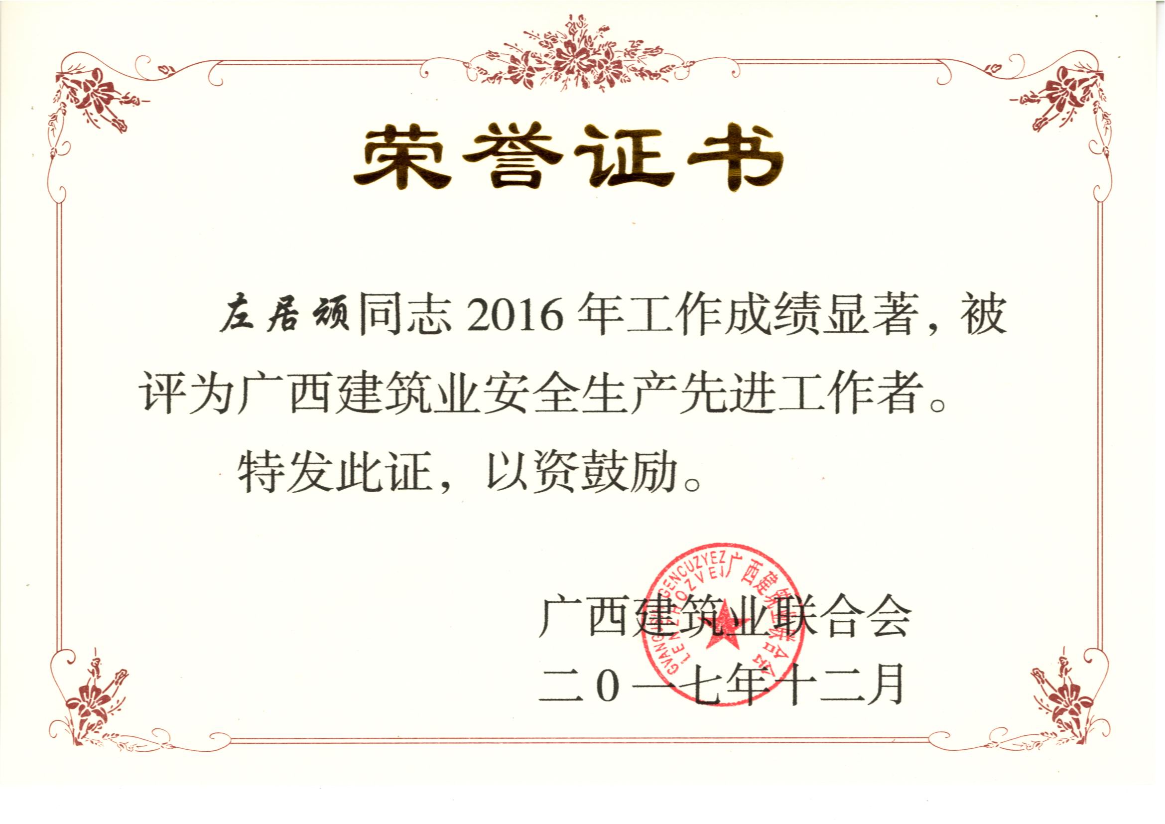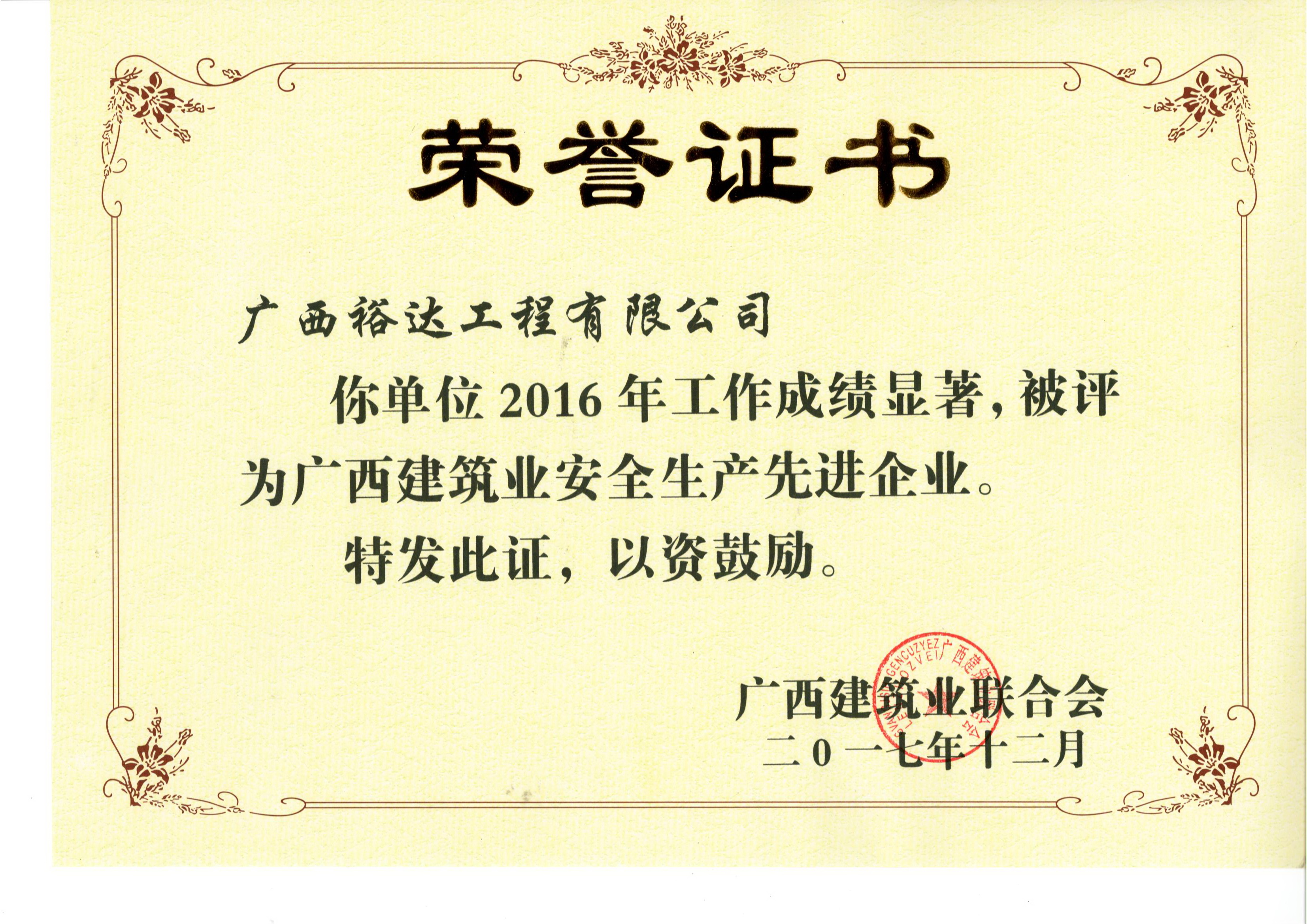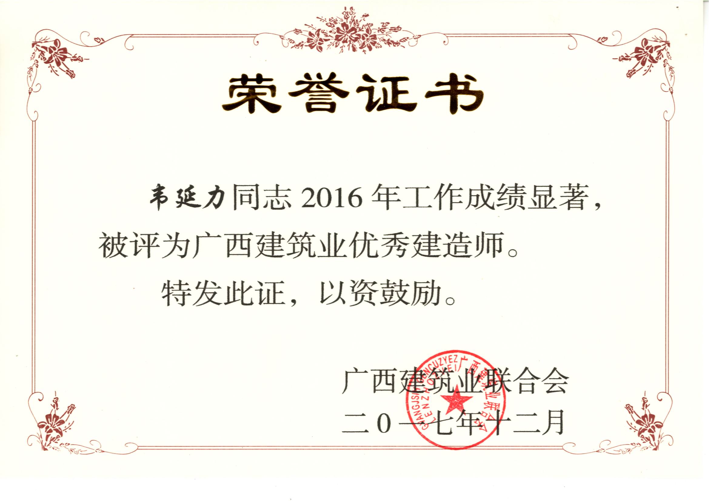 据悉,大会对广西建筑行业2016年度的先进企业和优秀个人进行表彰,我公司继2015年度后再获2016年度“广西建筑业先进企业”、“广西建筑业诚信企业”、“广西建筑业质量管理优秀企业”、“广西建筑业安全生产先进企业”和“广西建筑业绿色施工先进单位”等荣誉称号。我公司总经理权龙福被评为“2016年度广西建筑业优秀企业经理”,我公司韦延力、覃其成、胡凌毅、左居顽共4位同志被评为“2016年度广西建筑业优秀建造师”,我公司彭菱、韦秋凤、覃其成、胡凌毅、韦凤玲、陈春佑、左居顽、冼学军、卢洋、段菁、覃登年共11位同志被评为“2016年度广西建筑业安全生产先进工作者”。这些荣誉的背后是公司全体员工辛勤的汗水和默默无闻奉献的结果,是公司积极践行“工匠精神”的重要肯定,是公司的综合实力的不断提升和行业良好的信誉的充分体现,再次将裕达工程的品牌影响力和竞争力提上新的台阶。