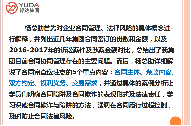 广西裕达投资控股集团合同协同管理及法律风险防范培训成功举办
