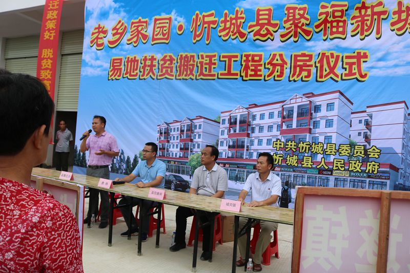 忻城县聚福新城扶贫安置项目(光明小区)总用地面积约为68329.87平方米(约102.50亩),总建筑面积约为117145.17平方米,共42栋房子,其中住宅1348套,商铺89套。本次分房仪式活动,分房数量为300套,共300户贫困户领到了钥匙,解决了部分贫困户的搬迁安置。在分房的现场工作人员热情的解答群众的问题,小区的建设得到了群众的一致好评。
