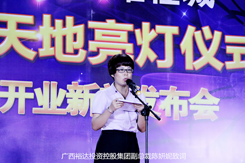 广西裕达投资控股集团副总裁陈妍妮女士在发布会上致辞:“裕达新天地把开业时间精确到月、日,是裕达集团给予大家信心的保证,更是对业主、对商家、对市民的承诺!”