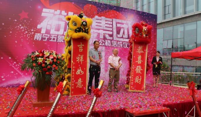 今日上午,裕达集团新办公楼前张灯结彩,雄狮劲舞,热闹非凡。上午9:00整,广西裕达投资控股集团副总裁兼广西裕达投资有限公司总经理梁锋先生激情洋溢的致辞拉开了庆典的帷幕;随后集团副总裁覃其成与副总裁邓亚德进行醒狮点睛,把热闹喜庆的氛围推向了高潮;最后集团所有高层领导共同为新办公楼揭牌,伴随着掌声与喝彩声,红色绸缎徐徐拉开,“裕达集团”四个大字赫然跃世,把热闹喜庆的氛围再次推向高潮。这不仅标志着裕达集团五象总部基地办公楼正式启用,也拉开了裕达集团“深耕来宾、聚焦南宁、立足广西、面向全国”的战略蓝图。