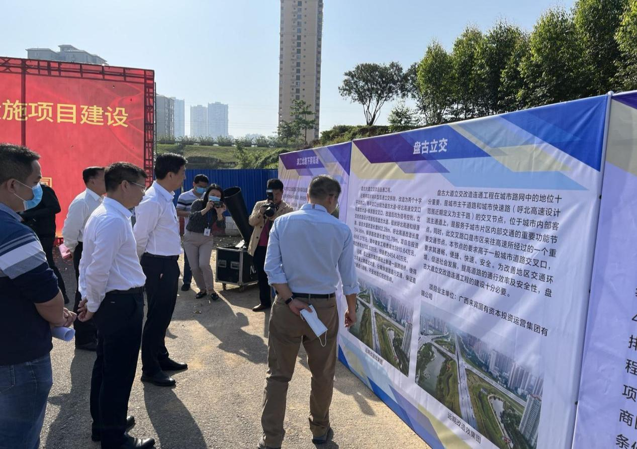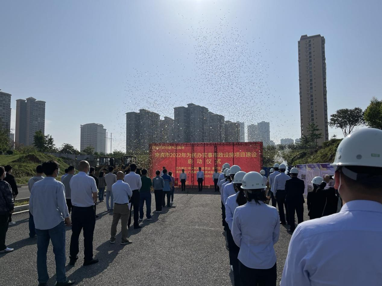 5月17日上午,2022年兴宾区背街小巷政治改造提升项目、来宾市2022年口袋文化公园建设项目、翠屏东路、盘古立交、滨江北路下穿高速等项目在兴宾区滨江小学附近举行开工仪式。来宾市副市长李光劭以及来宾市国有资本投资运营集团有限公司、开云集团有限公司等相关领导人员共40余人参加启动仪式。