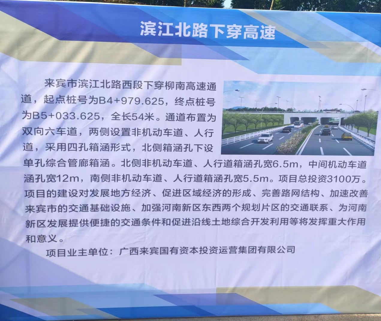来宾市滨江北路西段下穿柳南高速通道由开云集团有限公司承建,项目全长54米,通道布置为双向六车道,两侧设置非机动车道、人行道。北侧非机动车道、人行道箱涵孔宽6.5m,中间机动车道涵孔宽12m,南侧非机动车道、人行道箱涵孔宽5.5m,项目总投资3100万。项目建成后,将有效缓解这一路段的交通拥堵问题,使附居民上班、上学出行更为安全便利。同时,项目建设能进一步加强来宾河南东西两个片区交通联系,促进沿线土地综合开发利用,提高市场价值。接下来,工程公司将认真按照有关要求抓好项目建设,做好工程质量保障、安全保障,并加快建设进度,确保项目按时按质早日建成。