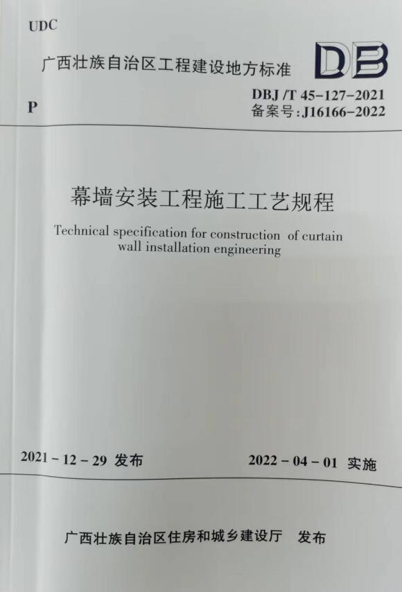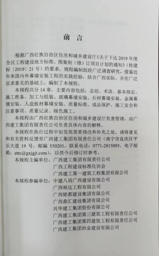 近日,由公司参编的《幕墙安装工程施工工艺规程》的广西工程建设地方标准,经广西住房和城乡建设厅批准发布,于41日起正式实施。