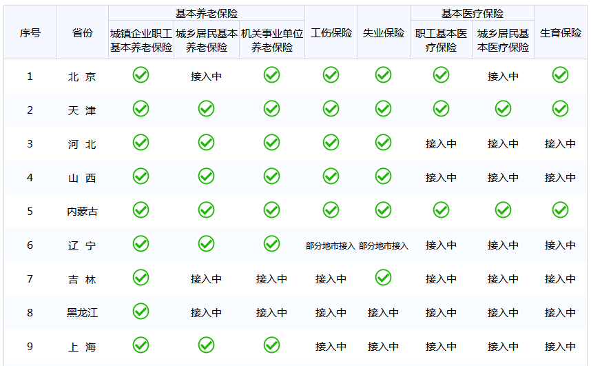 目前全国各省开通社会保险个人权益记录单查询服务情况如下: