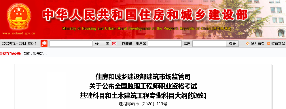 住建部公布2020年“监理工程师考试”科目大纲