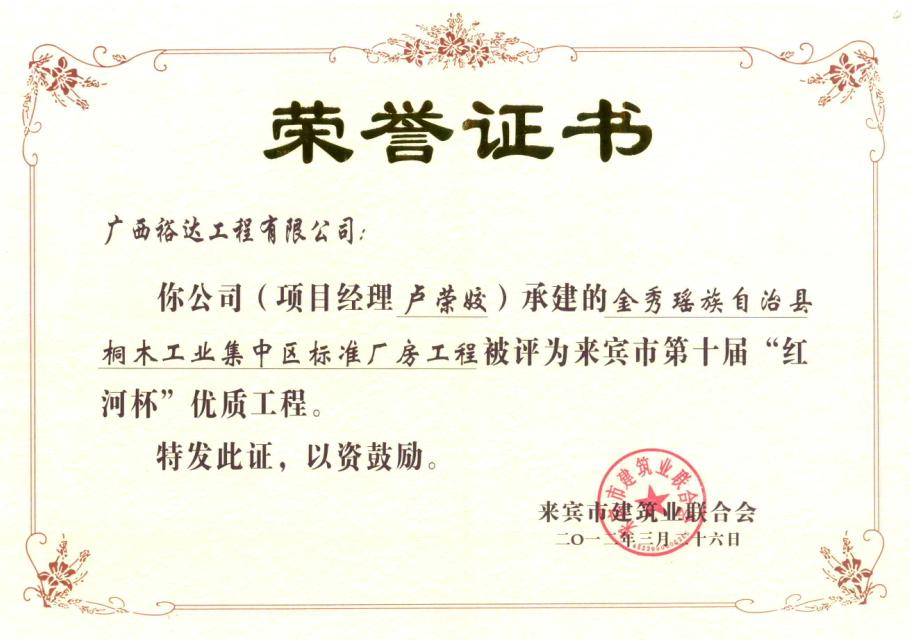 2012年来宾市第十届“红河杯”优质工程