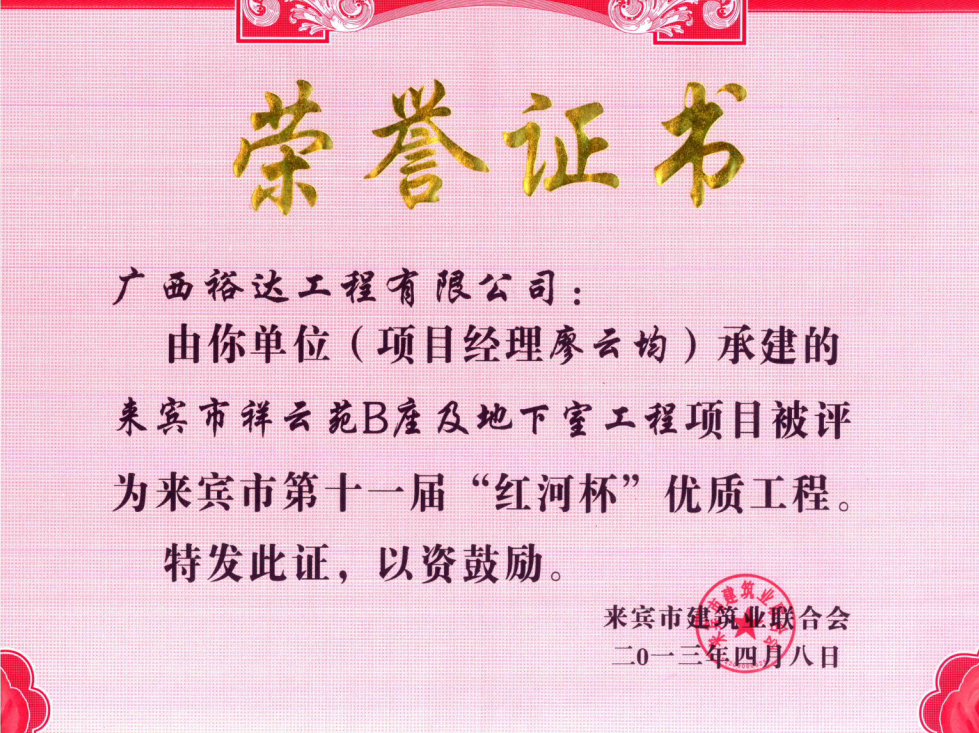 2013年来宾市第十一届“红河杯”优质工程