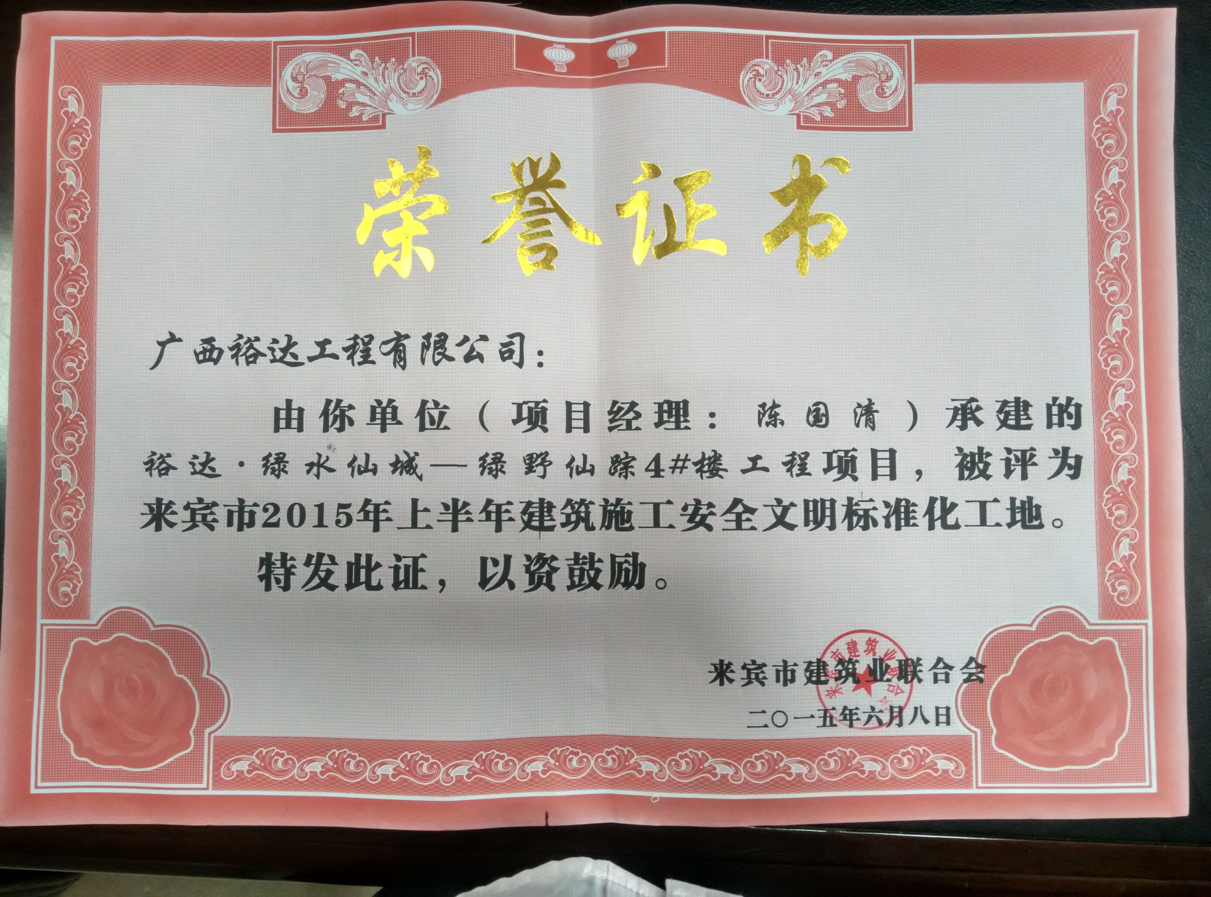2015年下半年建筑施工安全文明标准化工地(金碧天誉B区16#楼)