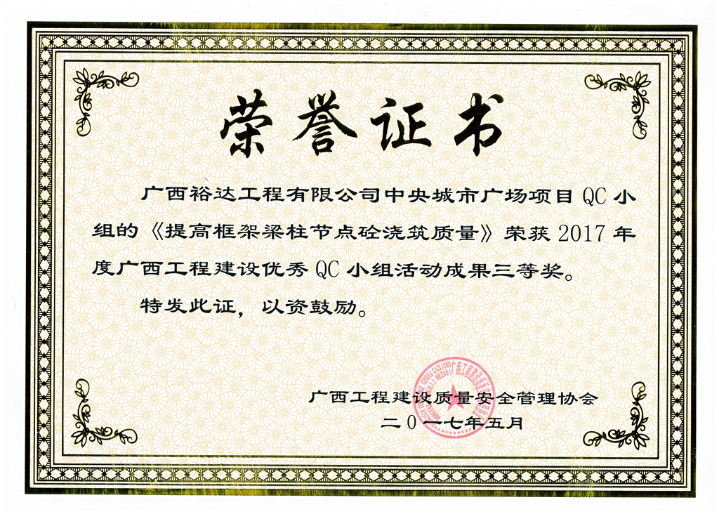 2017年广西工程建设优秀QC小组活动成果鼓励奖