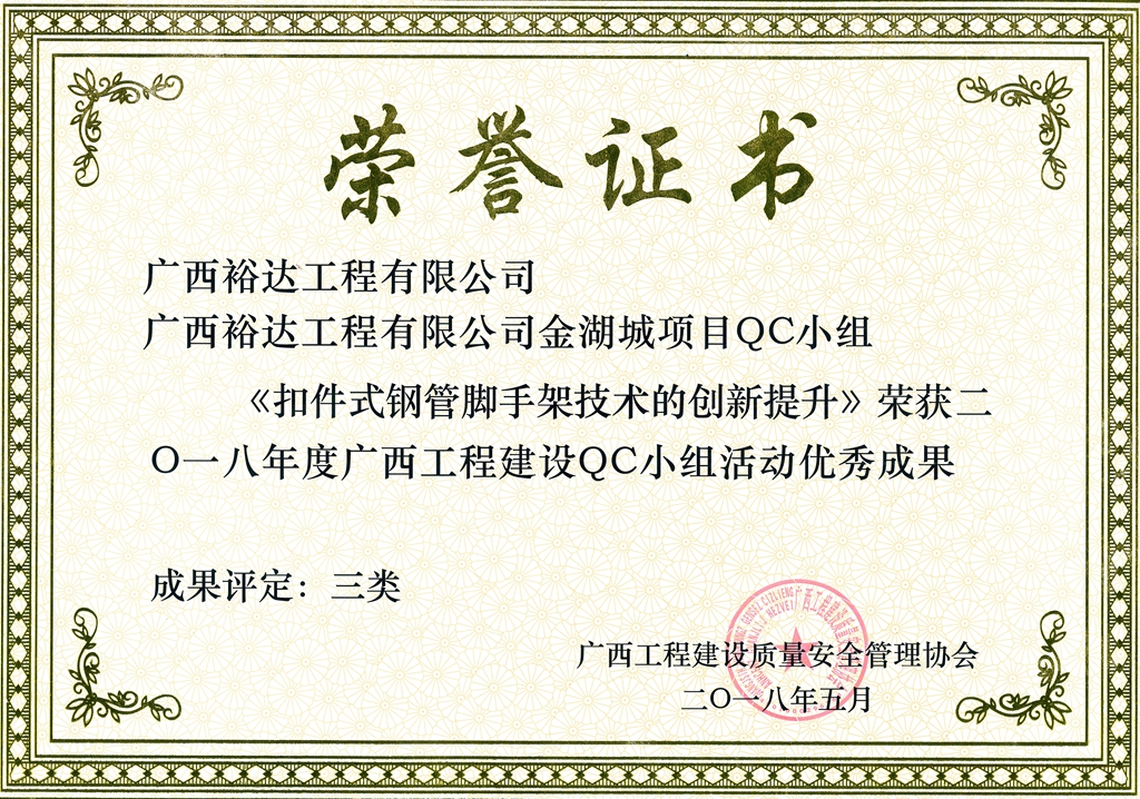 2018年度广西工程建设QC小组活动优秀成果