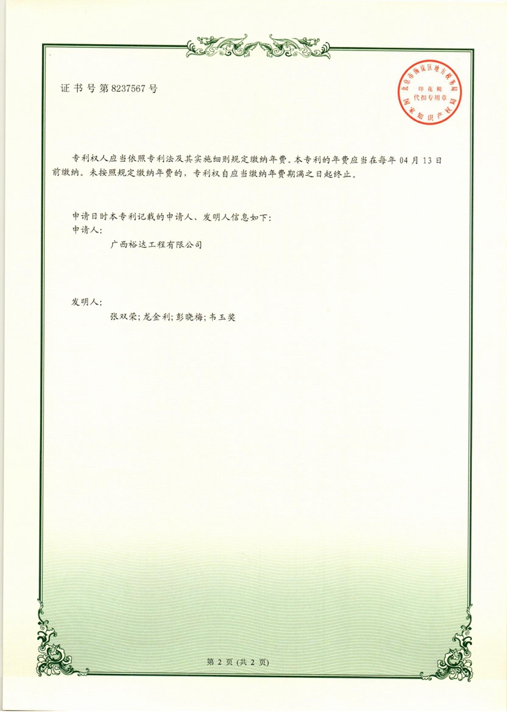 2018年实用新型专利证书(一种工地用筛沙机)