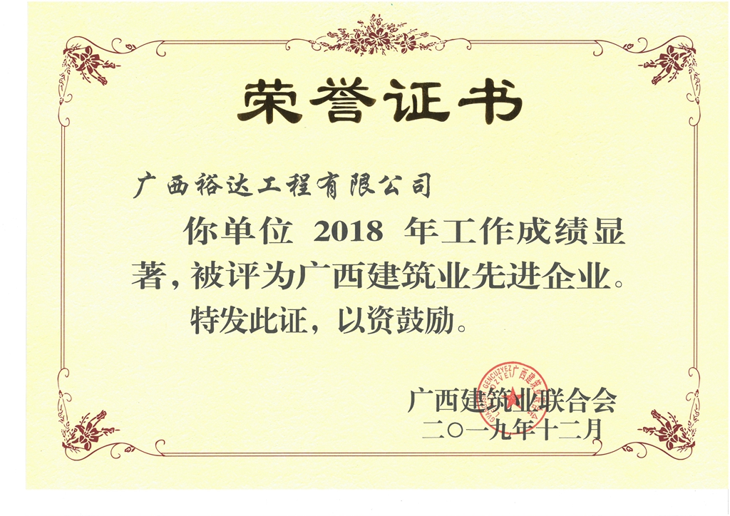 2018年广西建筑业先进企业
